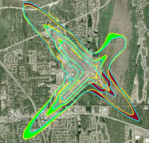 Description: ANEFNL25Noise-Contours: Published 2025 forecast noise contour from the 2010 LTCP (60-80 DNL in 5 dB increments)Received October, 2017